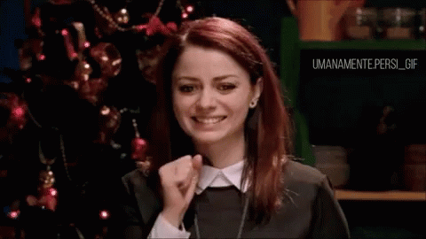 Annalisa reacts with a playful 'Azz un po' in front of a festive Christmas tree, from 'Babbo Natale Non Viene Da Nord'.