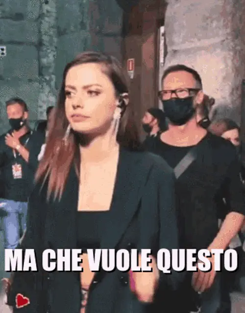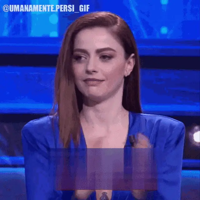 Italian singer Annalisa exclaims "Nooo Scherzo!" (Nooo, I'm kidding!) during a lively moment, holding a microphone.