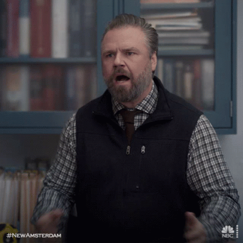 Dr Iggy Frome from New Amsterdam shows an annoyed and frustrated reaction, arms crossed.