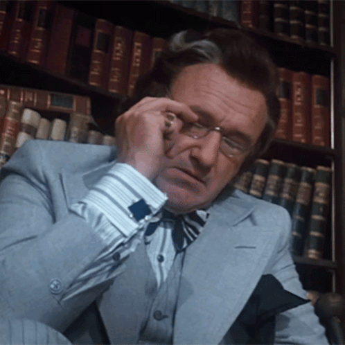 Gene Hackman as Lex Luthor, looking annoyed and stressed, rubbing his forehead.