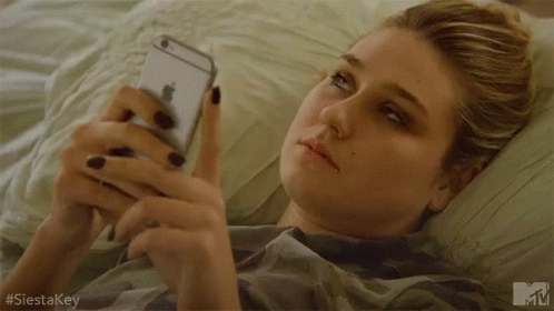 Madisson Hausburg lies in bed, looking annoyed and frustrated while scrolling on her phone.