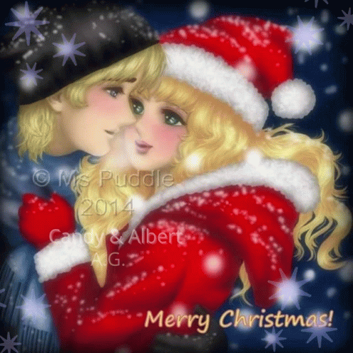 Candy and Albert share a tender moment in a festive Christmas illustration by Ms Puddle.