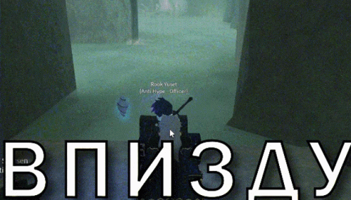 Players Rook Yuset and Seth Scarsen in the game Deepwoken, with Russian text 'В ПИЗДУ' on screen.