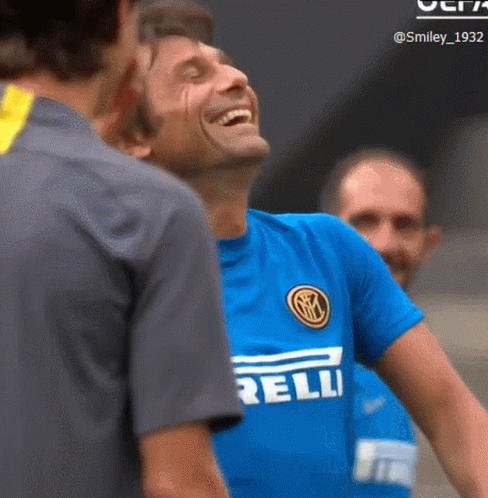 Antonio Conte, the Inter Milan coach, shares a joyful laugh during a training session.