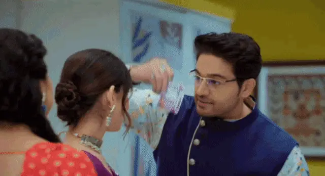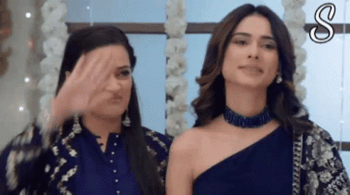 Anupamaa and another woman react with varied expressions, featuring Anuj Kapadia, mukku, and devika.