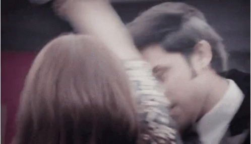 Anupre shares a tender, romantic embrace, with the man in a suit and the woman in a sparkly dress.