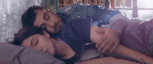 Anushka Sharma and Ranbir Kapoor sleeping peacefully together in bed, a tender moment.