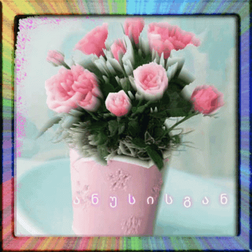 Anusi Anusisgan's greeting with pink flowers in a vase and Georgian text 'Thank you very much'.