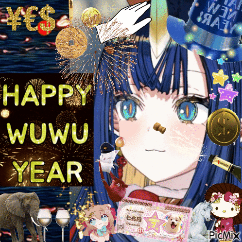 a picture of a girl with the words happy wuwu year