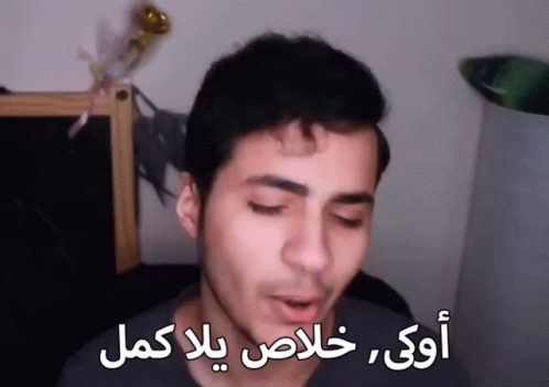 A man with the Arabic text 'أوكى, خلاص يلا كمل' (Okay, done, continue) overlaid on screen.