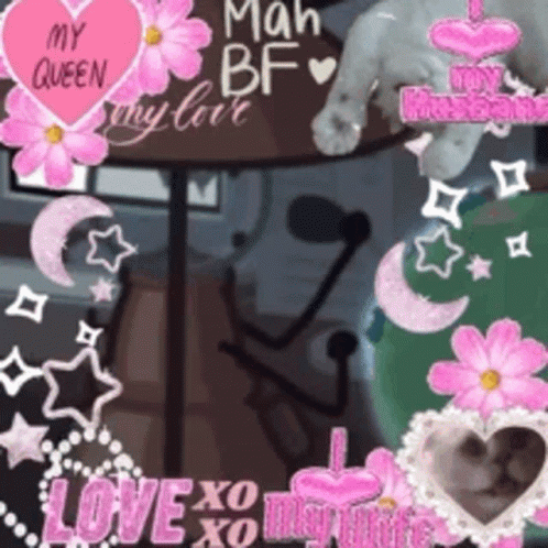 Aory Airy character framed by pink hearts, flowers, and text like 'My Queen' and 'My Husband'.