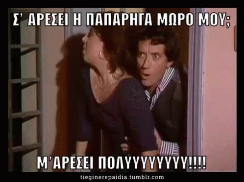 From the Greek series 'Oi Aparadektoi', a man asks a woman 'Do you like Papariga?' and she replies 'I like it a lot!'