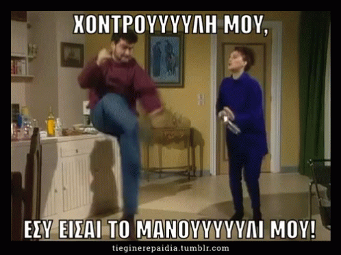 Aparadektoi characters dance energetically, with the Greek caption 'My Chubby One, You Are My Baby!'