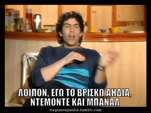 A man from the Greek series Aparadektoi expresses his strong opinion, finding something 'disgusting, demodé, and banal'.