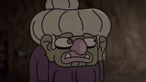 Granny Jojo from The Amazing World of Gumball looking embarrassed and nervous with gritted teeth.