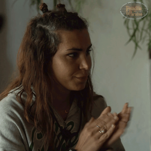Daniela Requena claps her hands, showing approval during 'Pesadilla en el Paraíso'.