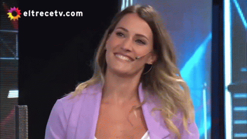 Mica Viciconte smiles and claps, showing excitement, with the El Trece logo visible in the background.