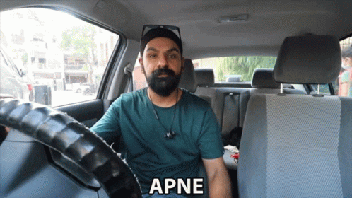Jasminder Singh, with a beard, sitting in a car with the word 'APNE' displayed on screen.