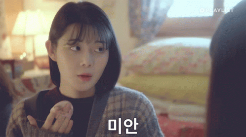 A worried Go Sohye or Kim Mina apologizes, saying '미안' (Sorry) in a poignant scene.