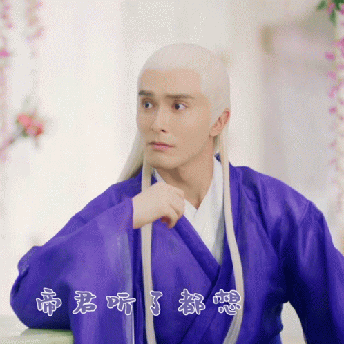 Dong Hua Dijun from Eternal Love giving a thumbs up while wearing a purple robe.