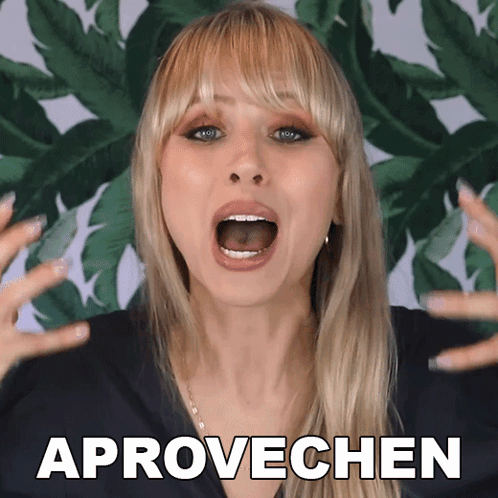 Superholly enthusiastically says 'Aprovechen' (Take Advantage), encouraging viewers with an excited expression.