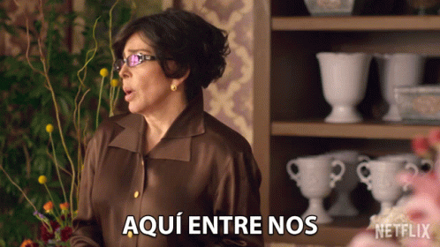 Virginia De La Mora shares a secret, saying 'Aqui Entre Nos' from the Netflix series La Casa De Las Flores.