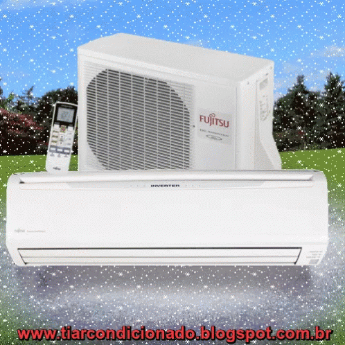 Fujitsu Inverter air conditioner for summer heat, showing indoor and outdoor units with remote control.