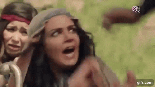 Scene from an Arab historical drama featuring distressed women and a man in traditional attire.