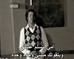 A man in a patterned sweater vest and white shirt speaks with Arabic subtitles displayed.