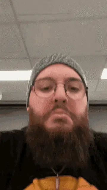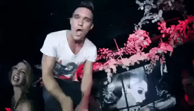 A man with curly hair and a mustache holds a spray can, making an intense expression.