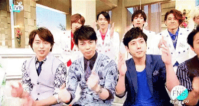 Japanese idol groups Arashi and A.B.C-Z appear together at the FNS Music Festival 2016.