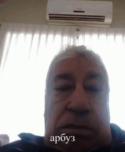 A Tajik grandfather reacts with various expressions to the word 'арбуз' (watermelon) displayed on screen.