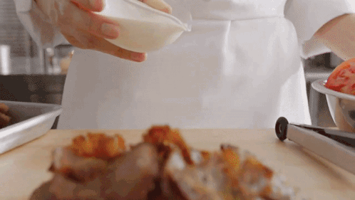 A chef prepares an Arby's gyro sandwich, drizzling sauce over meat, lettuce, tomatoes, and onions on pita bread.