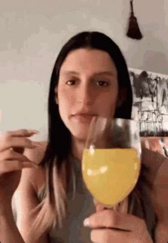 Arca sips from a glass of orange juice, looking directly at the camera with a thoughtful expression.