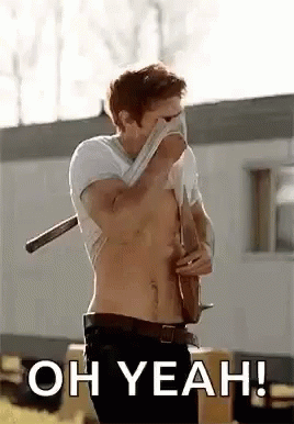 Archie Andrews from Riverdale, shirtless and sweaty, wipes his face while the text 'OH YEAH!' appears on screen.