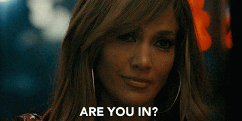 Jennifer Lopez asks 'Are you in?' with an intense expression, from the movie Hustlers.