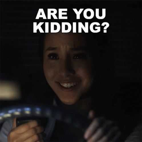 Rebecca Kwan as Emma reacts with disbelief, looking at her phone in the dark with the text 'ARE YOU KIDDING?'