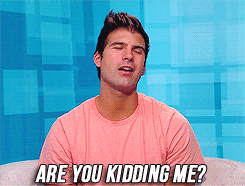 A man in a pink shirt reacts with disbelief, asking 'Are you kidding me?' with a questioning look.