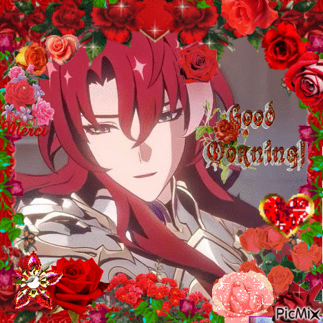 Argenti from Honkai Star Rail in a beautiful rose-framed image with a 'Good Morning!' message.