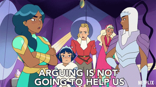 Adora (voiced by Aimee Carrero) tells her friends "Arguing is not going to help us" in She-Ra.