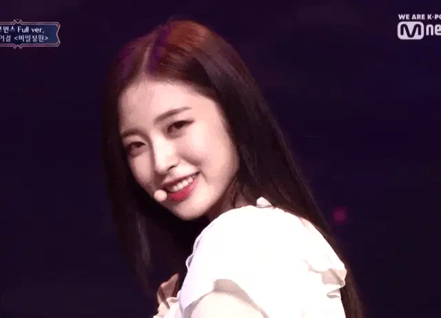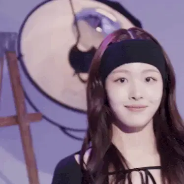 Arin from Oh My Girl poses with a flower headband and hexagon earrings, making a peace sign.