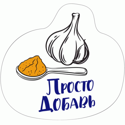 An illustration of garlic and spice with the Russian text 'Просто Добавь' (Just Add), related to Armenian food.