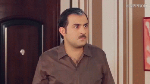 Mushex from Armenian Full House looks shocked and surprised, standing in a room with a door behind him.