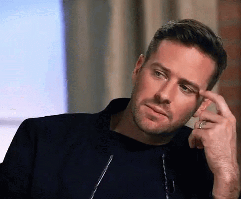 Armie Hammer, known for his role as Oliver in Call Me By Your Name, in a thoughtful moment.
