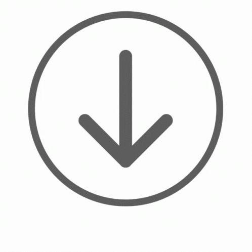 A simple gray arrow pointing downwards, enclosed within a circular outline on a white background.