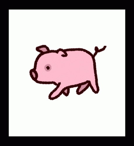 Animated drawing of a cute pink pig with a swirly tail.