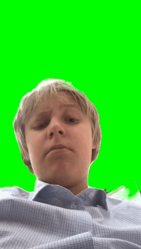 Артём Кукуш смотрит в камеру на зеленом фоне, одетый в клетчатую рубашку.
