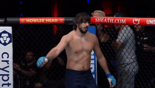 a man standing in a cage with a sign that says howler head