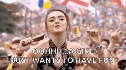 Maisie Williams (Arya Stark) enthusiastically sings 'Girls Just Want to Have Fun' to a cheering crowd.