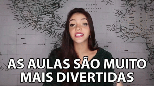 Debora Aladim explains how classes are much more fun, standing in front of a world map.